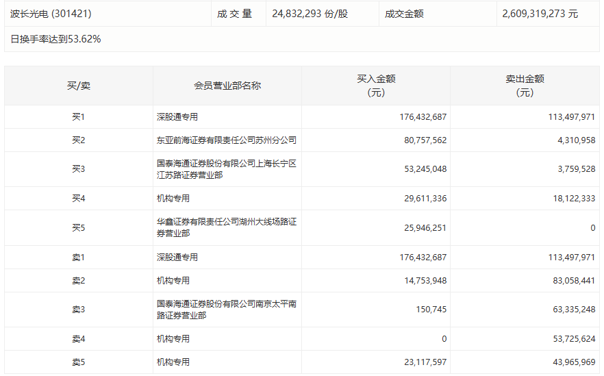 0 2分钟前波长光电今日涨14.60%,有3家机构专用席位净卖出1.43亿元