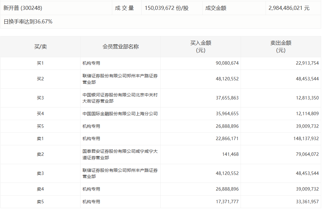 25 03-16 11:32新开普今日跌7.24%,有3家机构专用席位净卖出1.53亿元