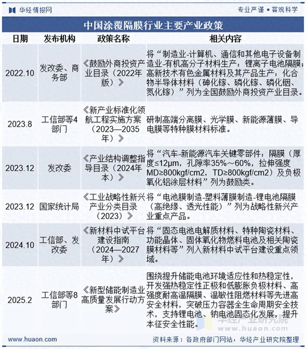 本文节选自华经产业研究院发布的《2025年中国涂覆隔膜行业发展现状及趋势分析:需求不断增长,发展前景广阔「图」》,如需获取全文内容,可进入华经情报网搜索查看。